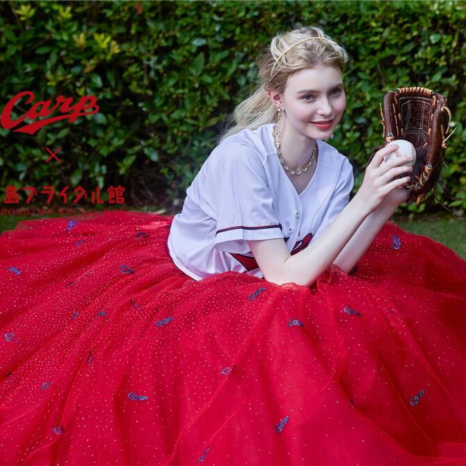 カープらしいカラーやデザインをさりげなく取り入れた一着は、野球ファンのおふたりや、広島らしさを大切にしたいカップルにおすすめです。