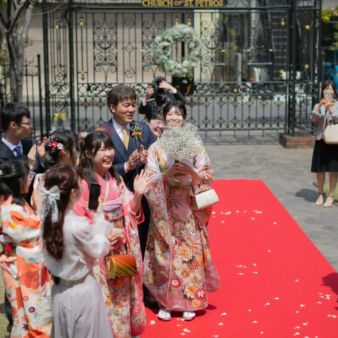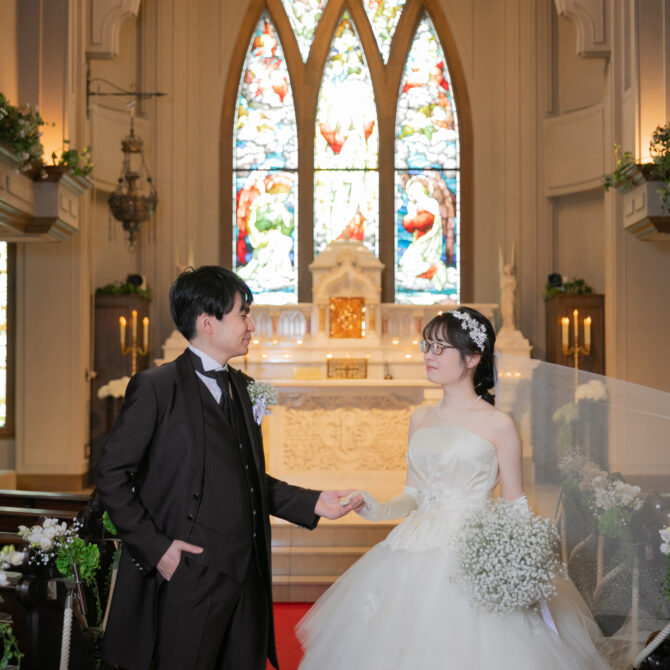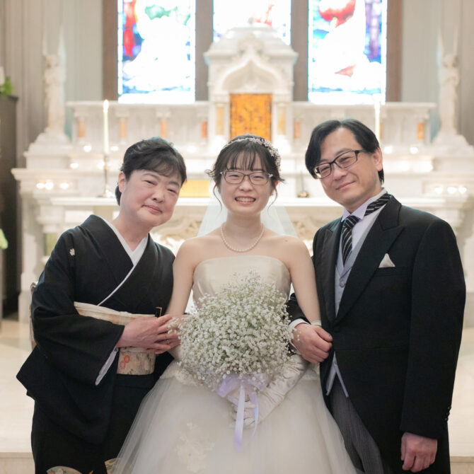 聖ペトロ教会を選んだ理由は、両親が挙げた結婚式場でもあり、私が赤ちゃんの頃から思い入れが深いこの場所で結婚式を挙げたかったからです。現在は聖ペトロ教会から遠く離れた場所に住んでいるのですが、どうしても諦めきれずコンタクトを取らせていただきました。幼い頃から思い描いていたような結婚式が実現できるか、とても不安だったのですが、夫や両親、プランナーさん達の後押しもあり、オンラインでのやり取りを重ねて決断しました。