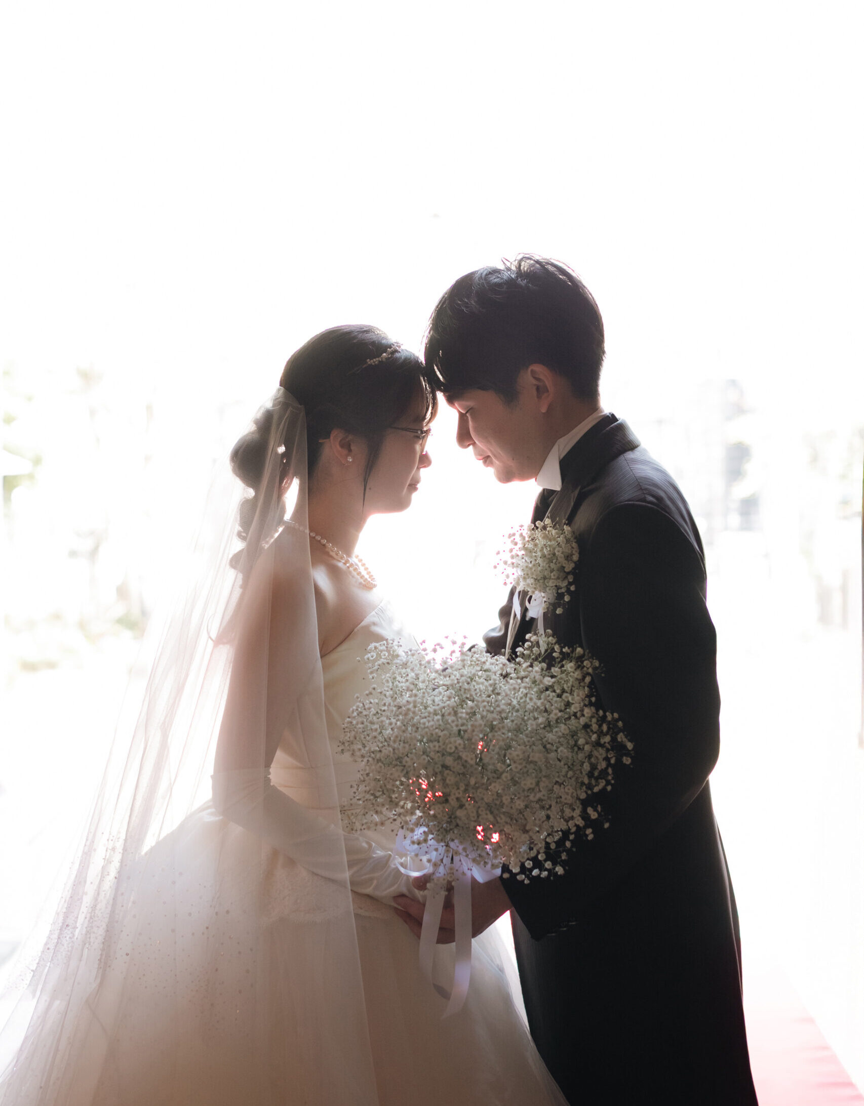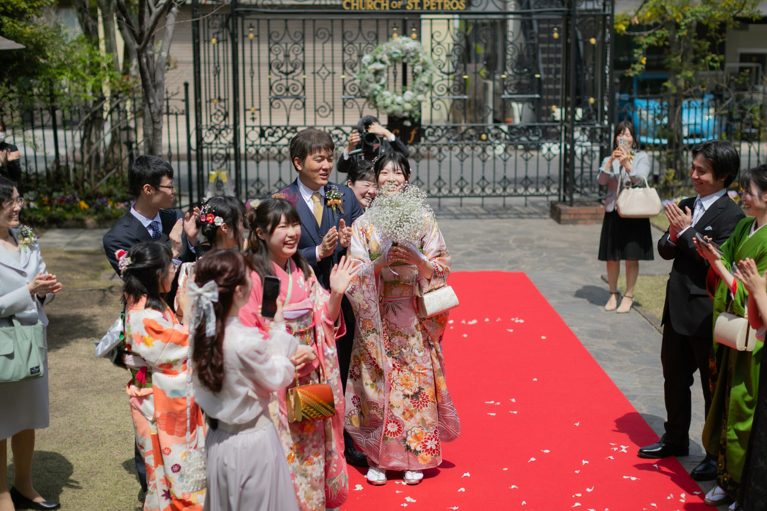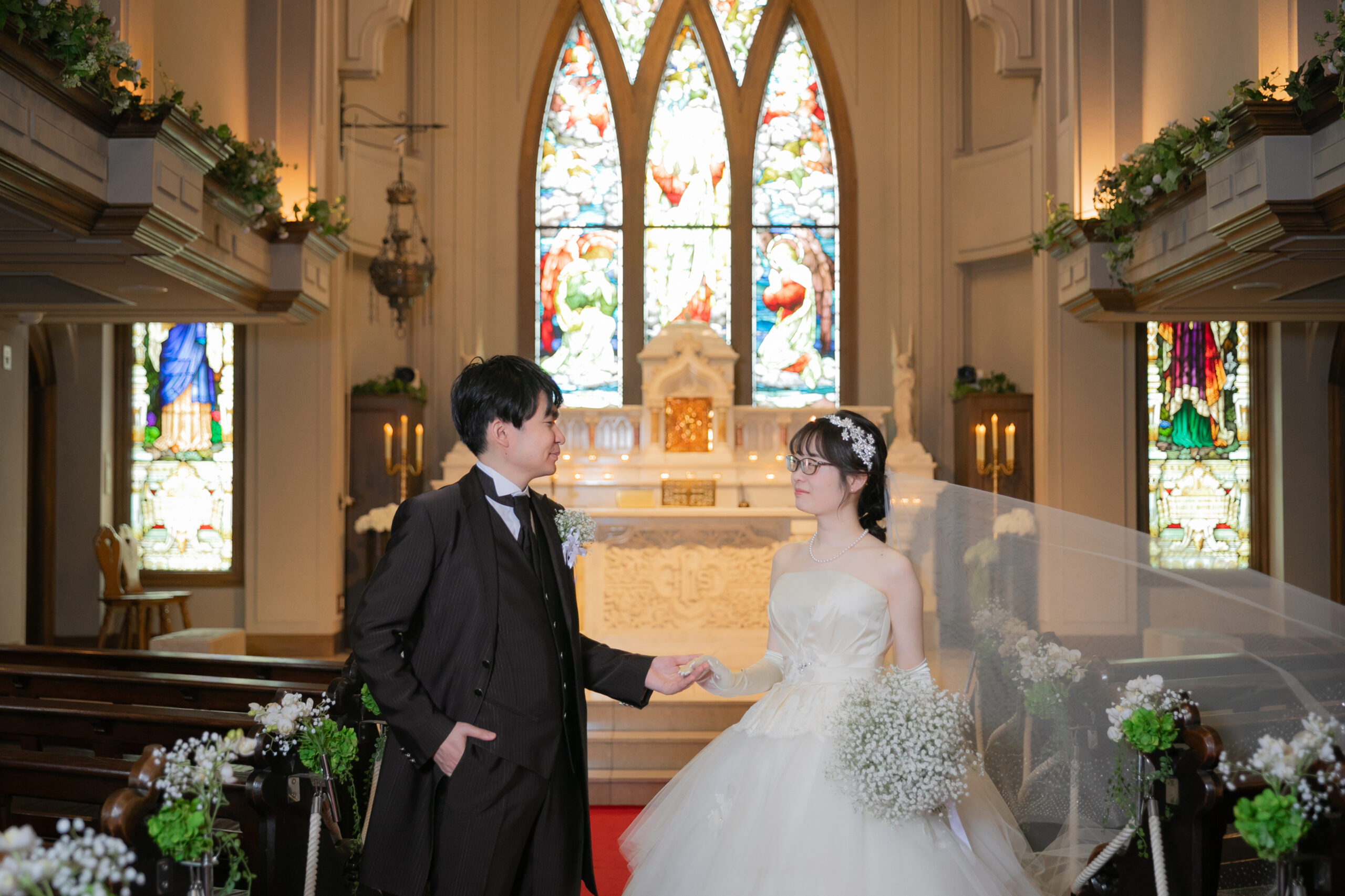 聖ペトロ教会を選んだ理由は、両親が挙げた結婚式場でもあり、私が赤ちゃんの頃から思い入れが深いこの場所で結婚式を挙げたかったからです。現在は聖ペトロ教会から遠く離れた場所に住んでいるのですが、どうしても諦めきれずコンタクトを取らせていただきました。幼い頃から思い描いていたような結婚式が実現できるか、とても不安だったのですが、夫や両親、プランナーさん達の後押しもあり、オンラインでのやり取りを重ねて決断しました。