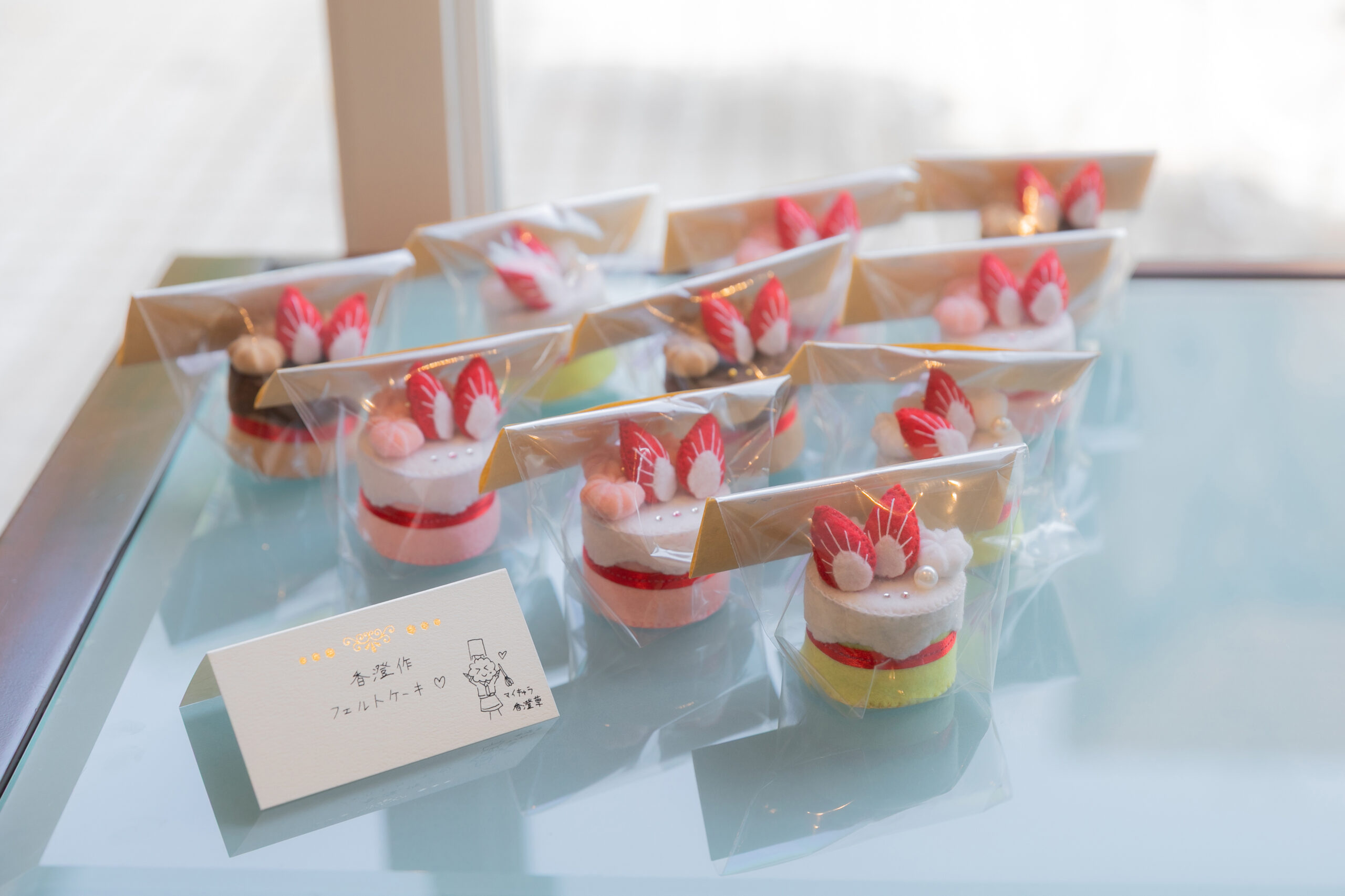 挙式後、おふたりはゲストの皆様が待っているガーデンへ。花びらや「おめでとう~!」という言葉とともに温かい祝福を受けられましたね。それから、幸福のおすそ分けとしてブーケトスを行いました。おふたりから感じられる溢れんばかりの“幸福”を受け取ることができました♪この後、ご家族の皆様はお食事会会場へ…!ゲストの皆様には、ここで手芸がお好きな香澄さんお手製のフェルトケーキを配りながらお見送り。一つ一つ丁寧に製作され、結婚式の思い出を記憶だけではなく、ゲストの皆様に形としても残されプレゼントされました。