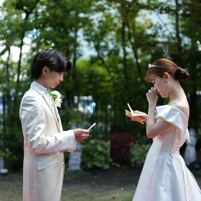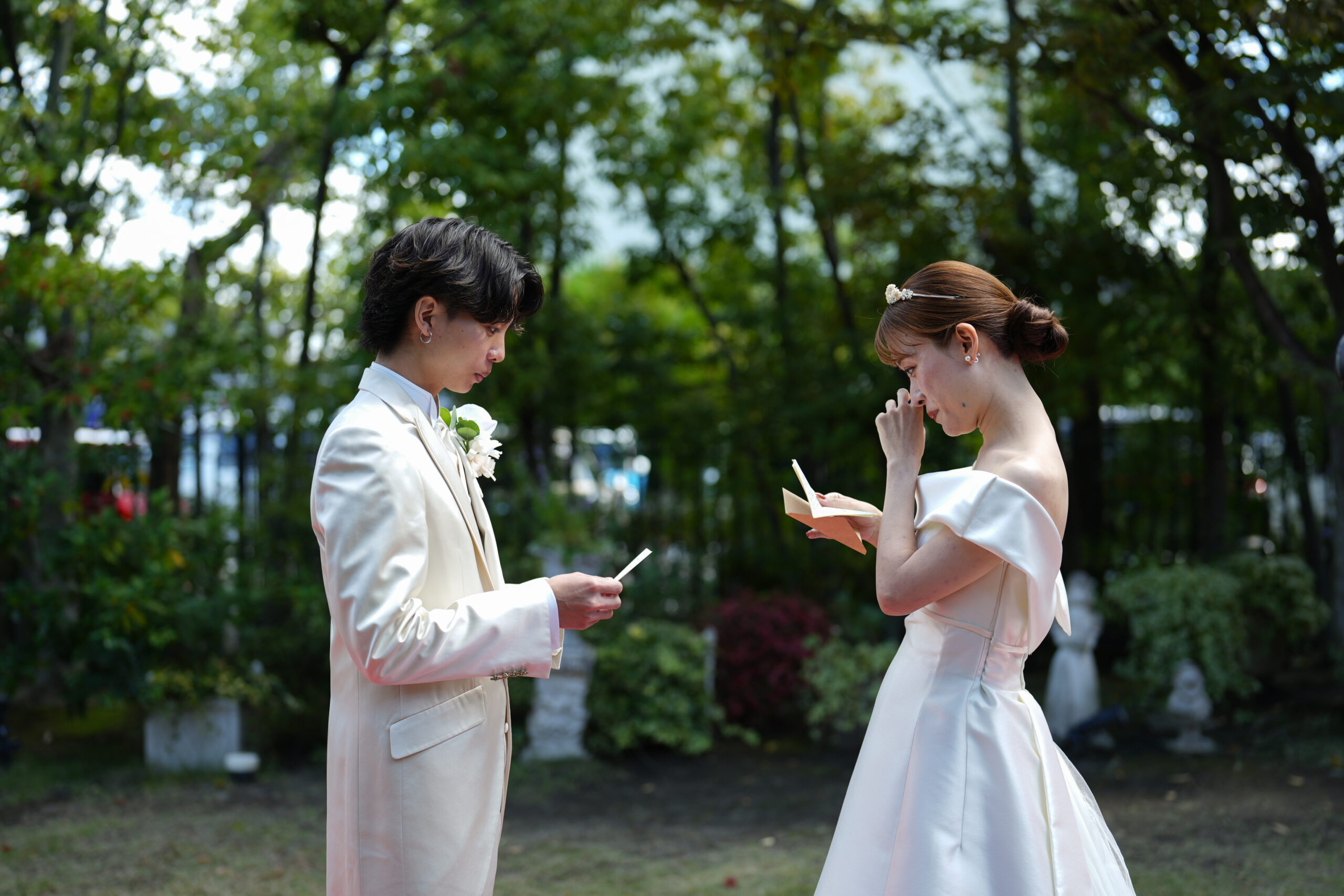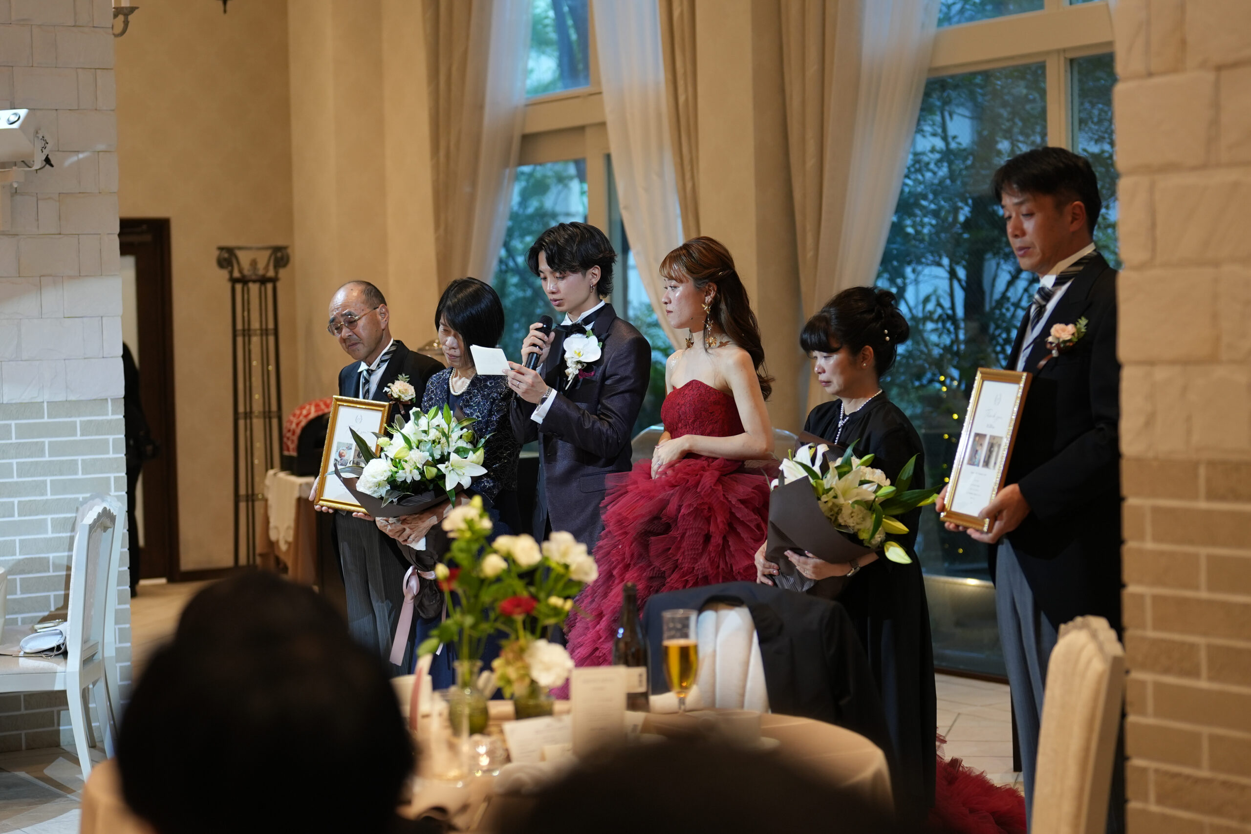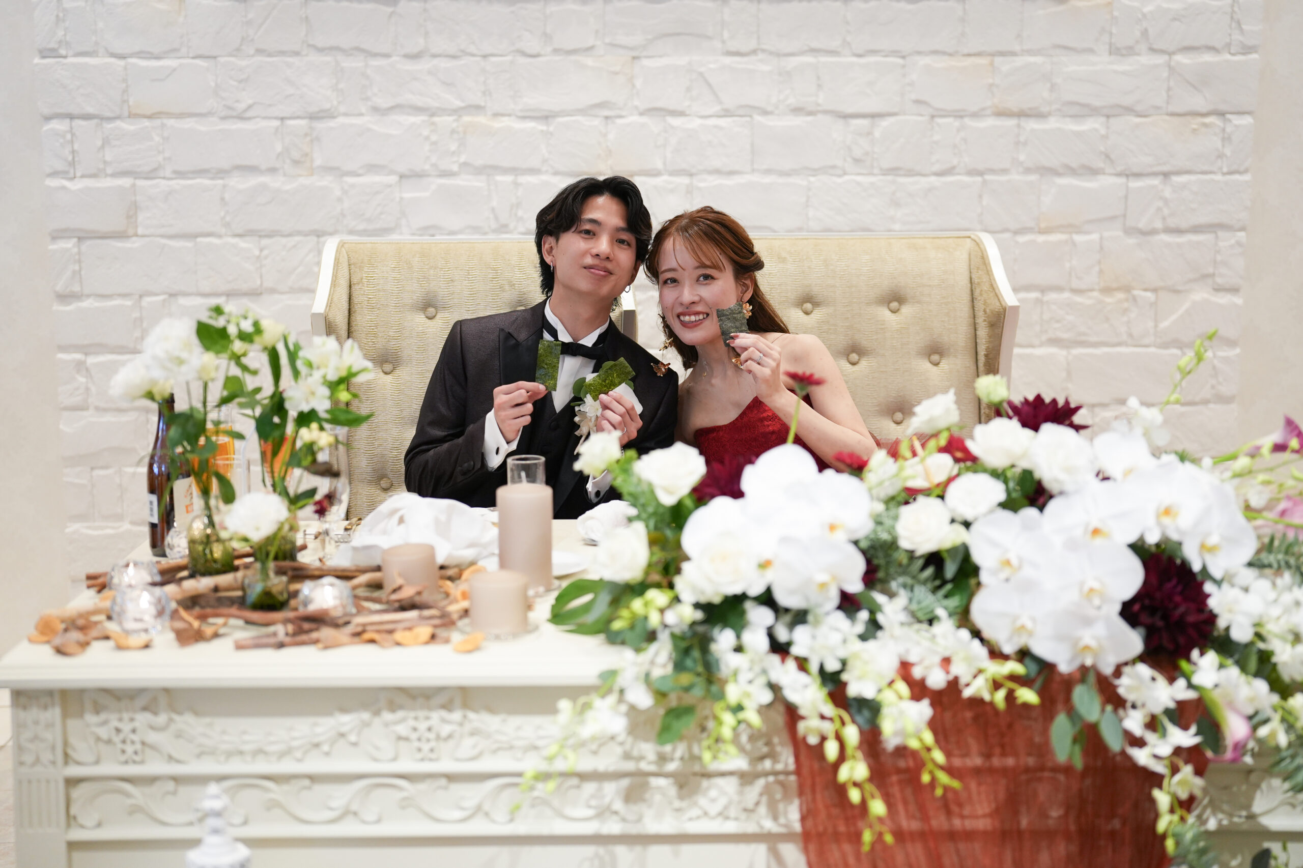 親に面と向かって感謝を伝える機会は案外ないので、男性もぜひ手紙を読むことをおすすめしたいです。当日は、スタッフの方々のあたたかな雰囲気にも支えられ、ゲスト参加型にしたかった私たちの想いがしっかりと形になりました。ゲスト一人ひとりとの距離が近く、会場全体がやさしい空気に包まれていたことが、とても印象に残っています。式後には「本当に温かい結婚式だったね」とゲストの方々から声をかけてもらい、私たちにとっても心に残る大切な一日になりました。