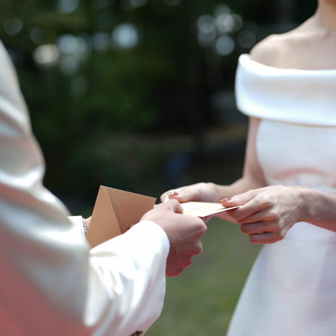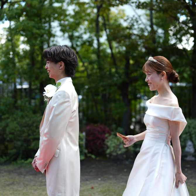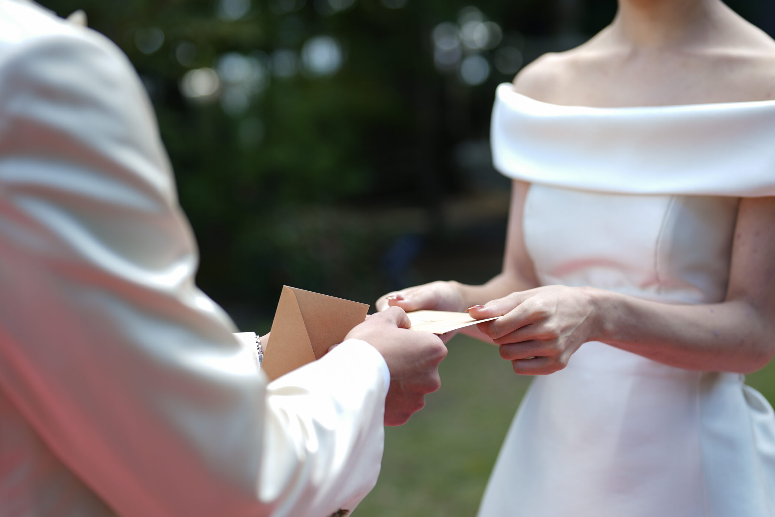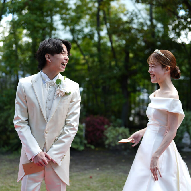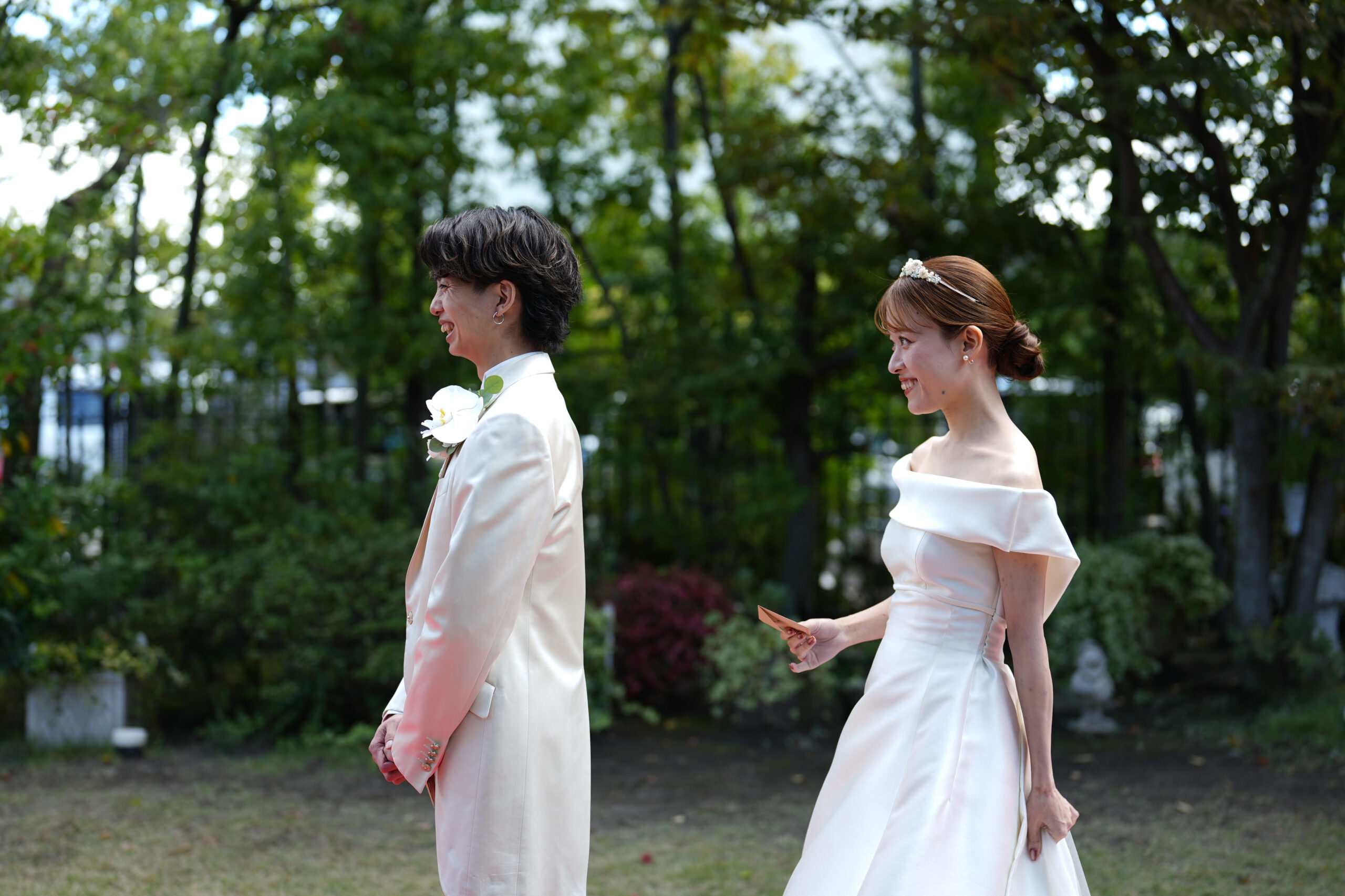 親に面と向かって感謝を伝える機会は案外ないので、男性もぜひ手紙を読むことをおすすめしたいです。当日は、スタッフの方々のあたたかな雰囲気にも支えられ、ゲスト参加型にしたかった私たちの想いがしっかりと形になりました。ゲスト一人ひとりとの距離が近く、会場全体がやさしい空気に包まれていたことが、とても印象に残っています。式後には「本当に温かい結婚式だったね」とゲストの方々から声をかけてもらい、私たちにとっても心に残る大切な一日になりました。