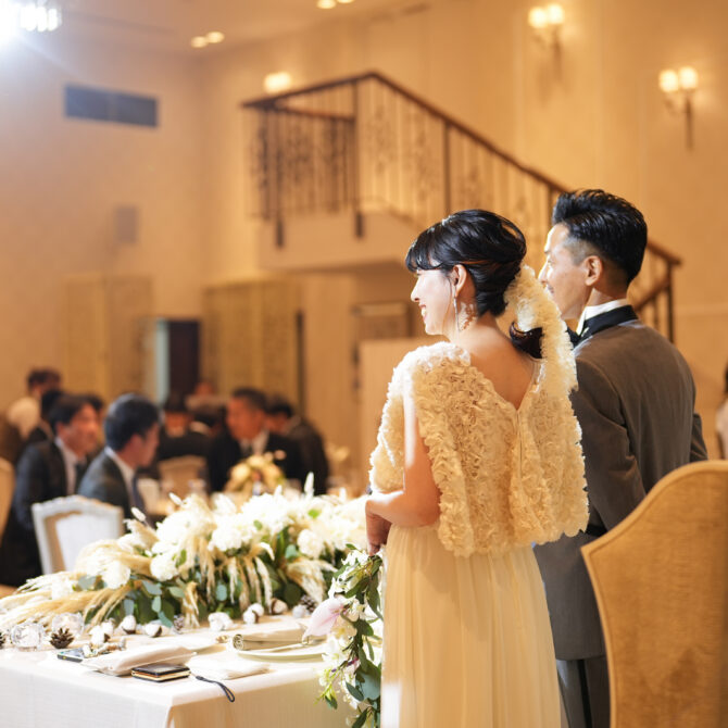 おふたりのテーマは【 めぐる、とき ~ In the Gentle Turn of Time ~ 】長い人生を巡り、ようやく出会えたおふたり。これまでの想い出が新たな始まりへとつながり、春夏秋冬が巡るように、これからの人生も彩り豊かにしてほしい。そんな願いが込められた一日です。