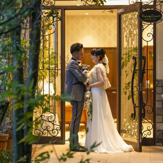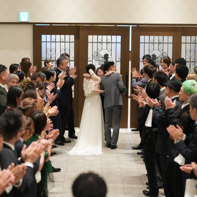 当日は、ご家族とのあたたかな食事会からスタート。その後ご友人が合流し、人前結婚式、そしてパーティへと続く二部制ウェディングでお届けしました。ご家族との時間をゆったりと過ごした後、祝福の輪が広がっていく進行は、世代を問わず人気のスタイル。それぞれの時間を大切にできる構成は、1日1組貸切だからこそ叶い、“今までの人生”と“これからの人生”をつなぐ一日にもぴったりでした。