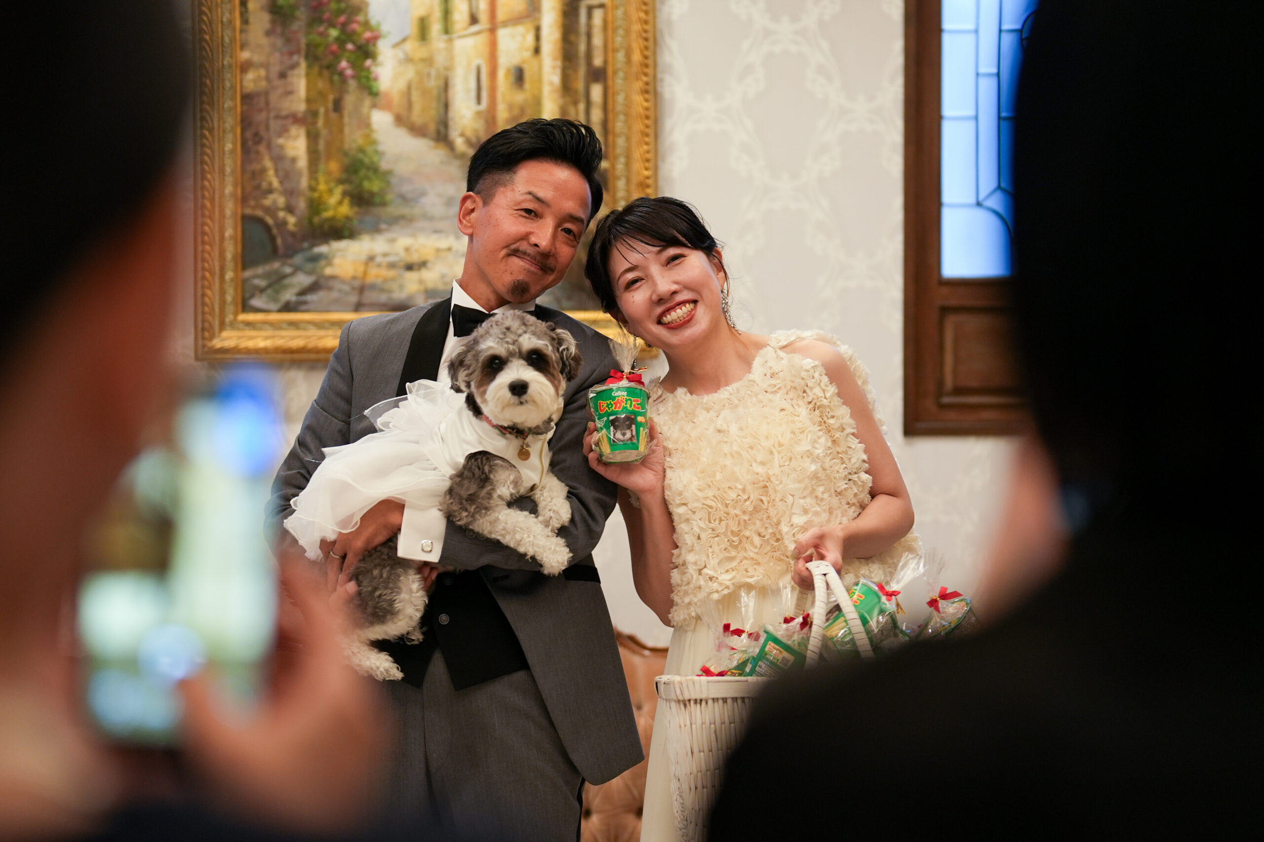 当日はゲストから「楽しかった!」という声をたくさんいただき、私たち自身も心から楽しむことができました。リングドッグや嬉しさと楽しさで何度も行った乾杯、そして最後のみんなからのサプライズは特に忘れられない思い出です。
