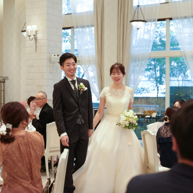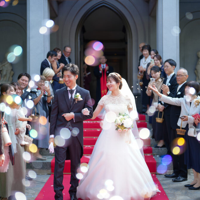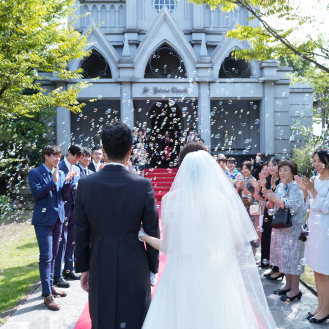 挙式後は、シャボン玉とゲストの温かい祝福の拍手に包まれながら、ご退場されました。