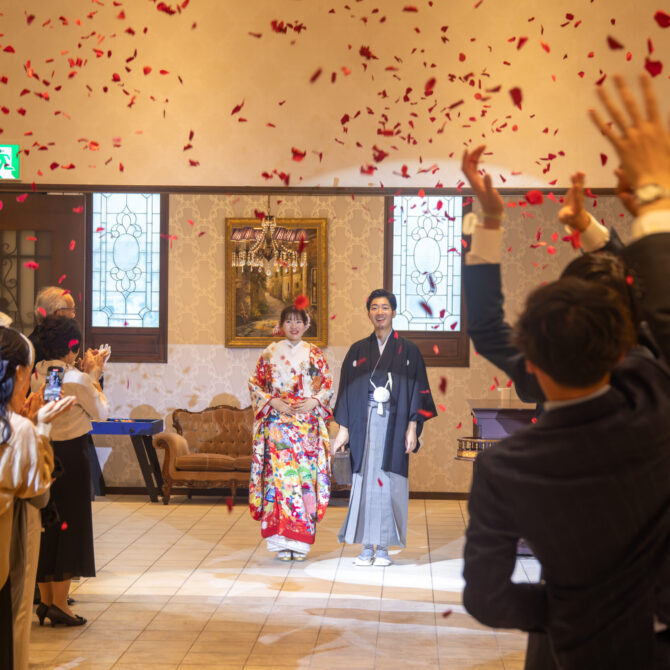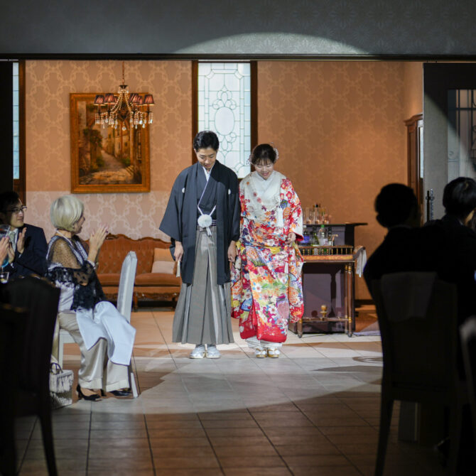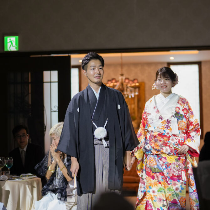 お色直し入場では、和装姿で登場!!凛とした美しさに、ゲストの皆さんから大きな拍手が送られました。