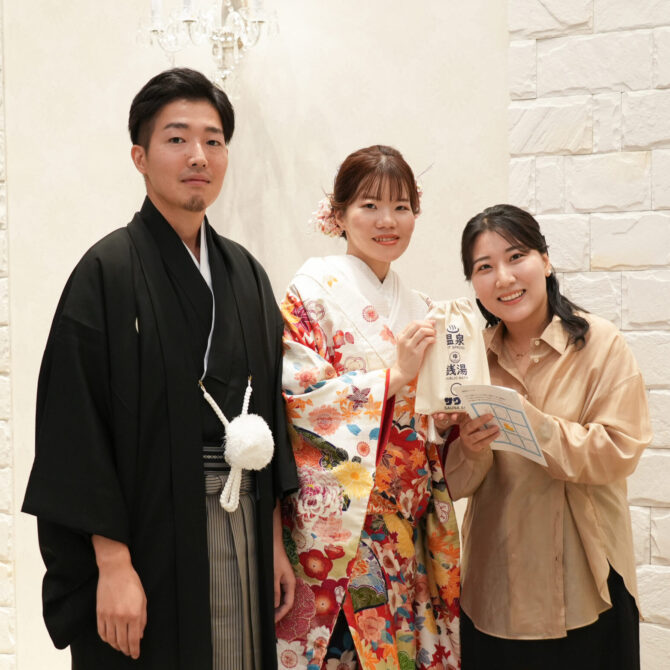パーティの終盤には、温泉が好きなおふたりにちなんだ「ととのい温泉BINGO大会」を開催!!ダブルビンゴになったゲストからは「ととのった~!!」という声が会場いっぱいに響き渡り、笑顔溢れるひとときとなりました♨