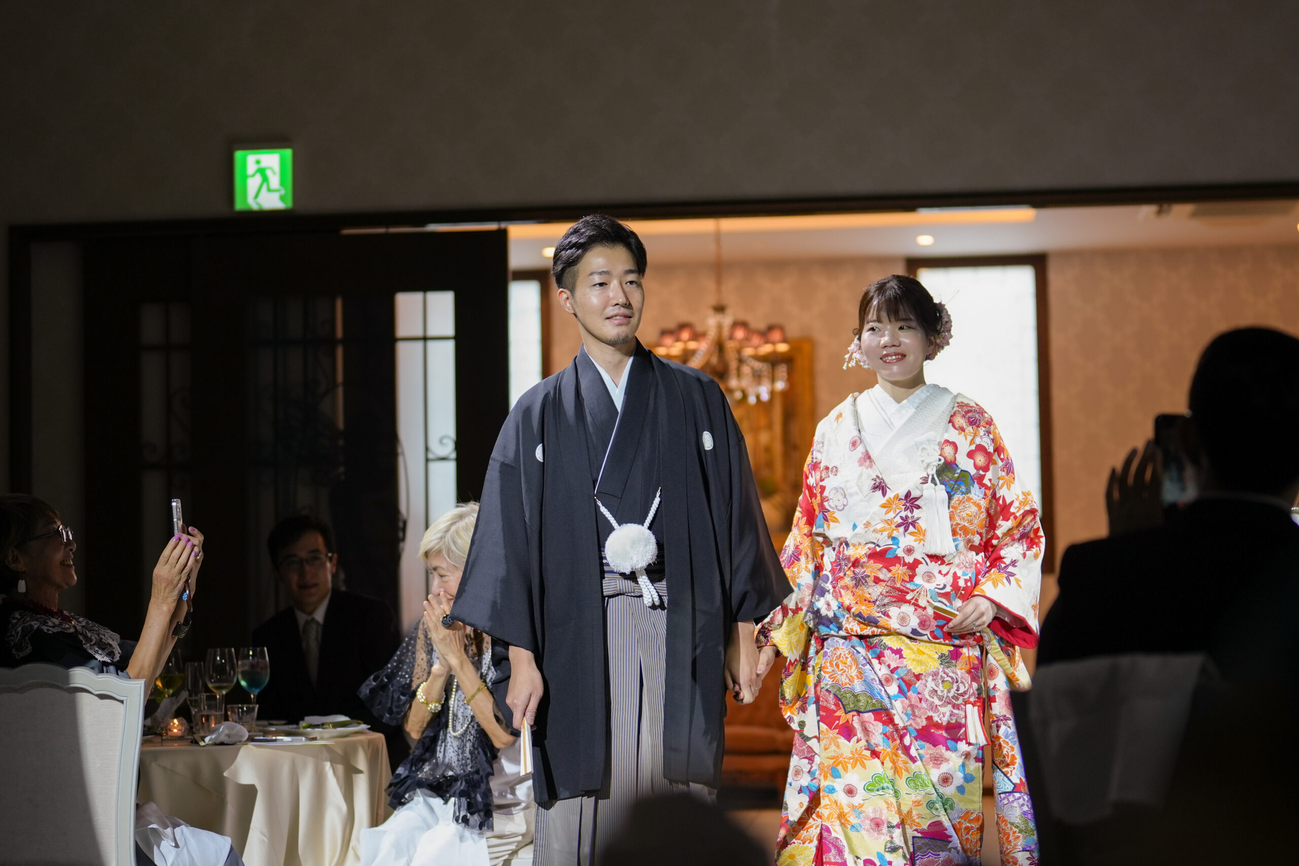 お色直し入場では、和装姿で登場!!凛とした美しさに、ゲストの皆さんから大きな拍手が送られました。