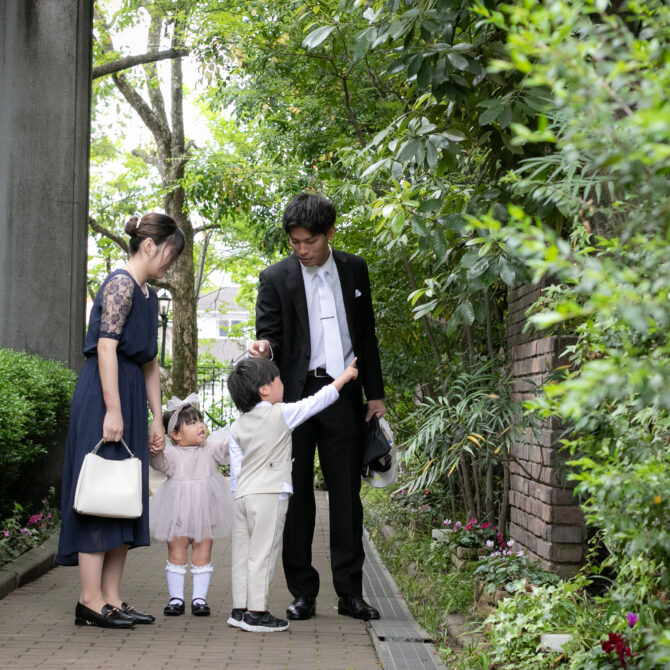 敷地内に足を踏み入れると、入り口にはおふたりの小さい頃のお写真がたくさん飾られていました。