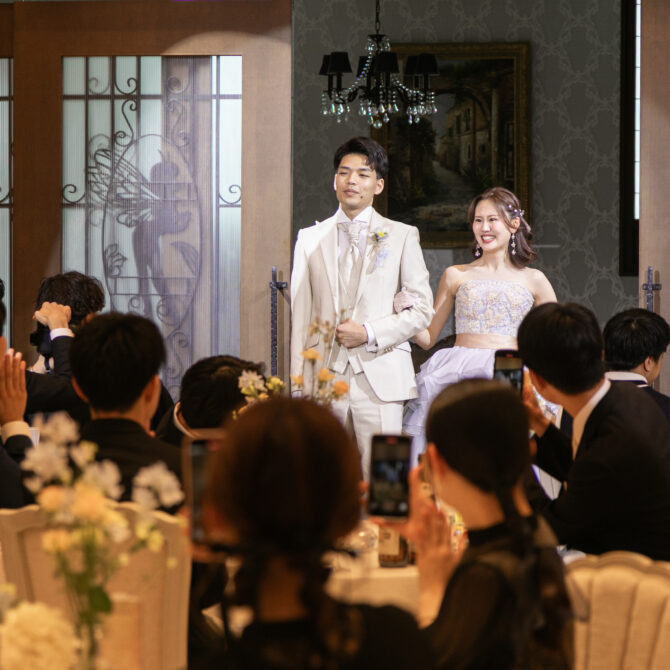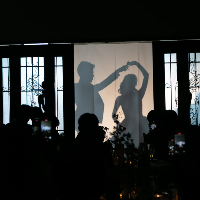 お色直し入場では、おふたりがシルエット入場で登場!ライトに照らされた姿がとてもロマンチックで、ゲストの皆さんからは思わず歓声があがりました。この日のためにたくさん練習を重ねてきたというダンスも披露され、会場は「ステキ!」という声と拍手でいっぱいに✨
