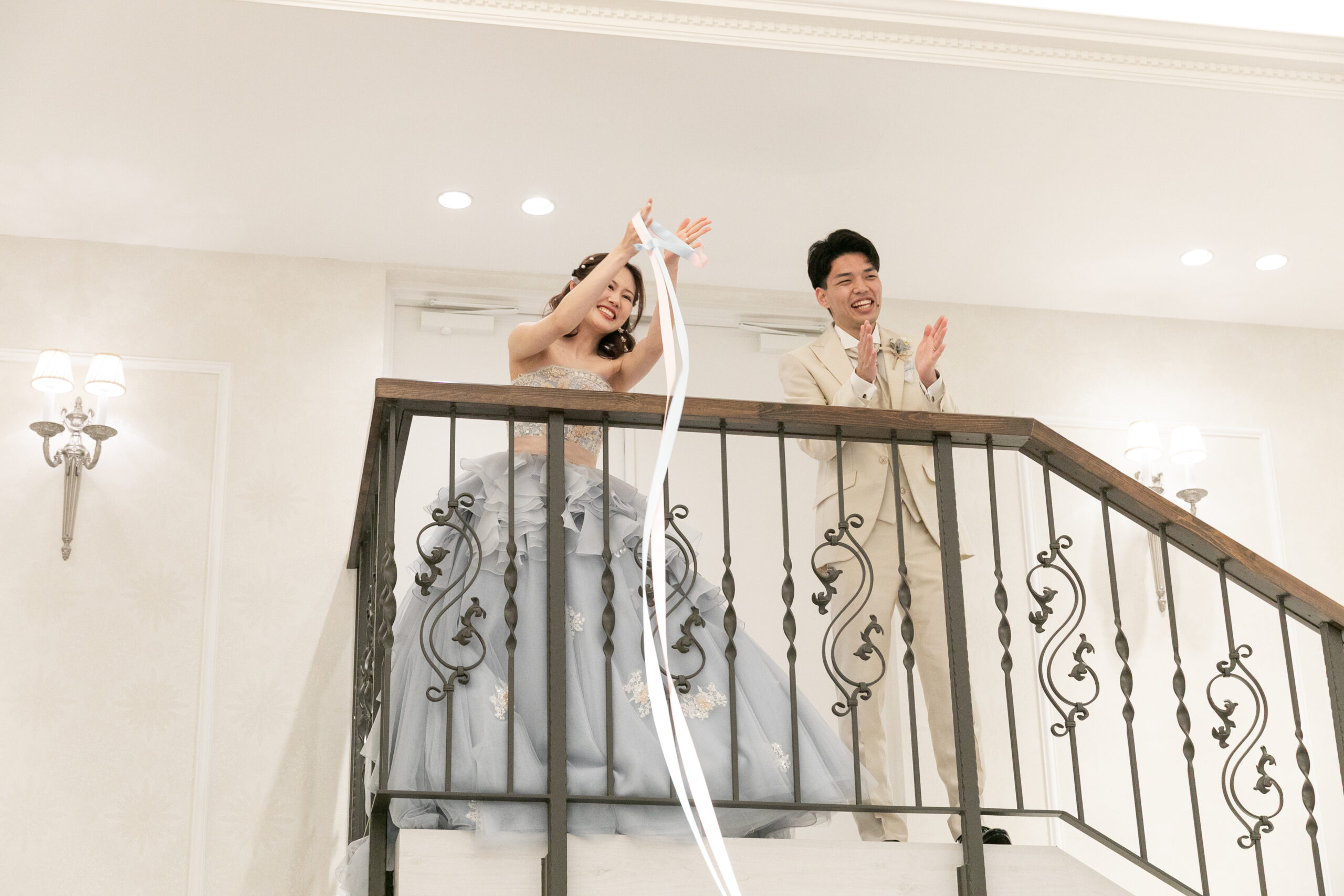 パーティ中盤には、おふたりが階段の上からサプライズ登場!