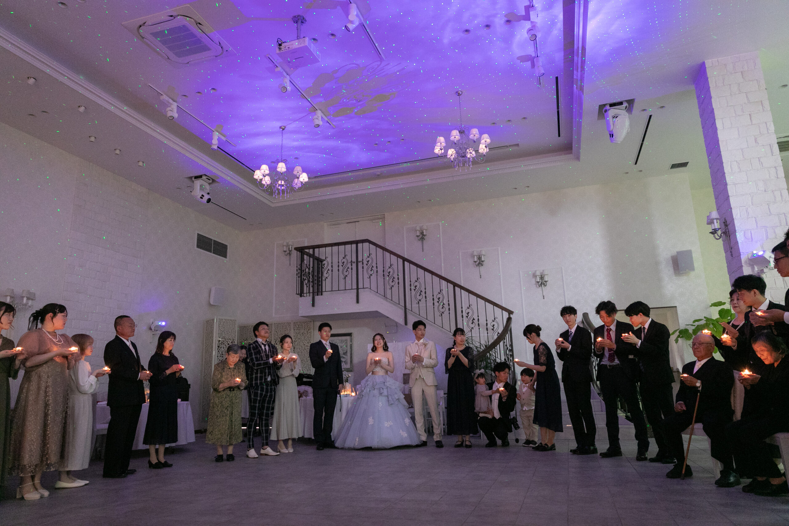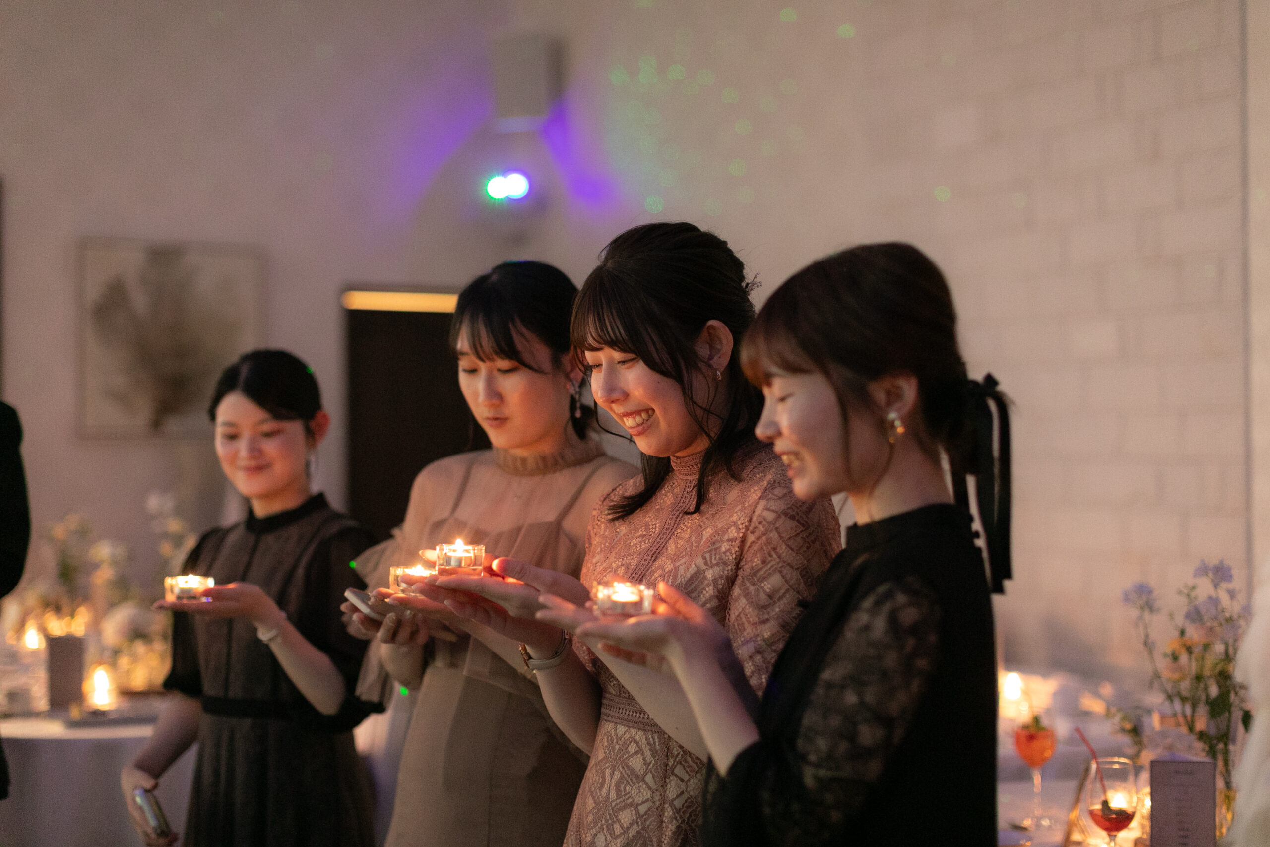 ゆらめく灯りには、これまでの感謝と、これからの幸せへの願いが込められています。 そして、司会者の 「皆様との大切なご縁がこれからもずっと続きますように。ここにいる全員の幸せを願って——」 という言葉に合わせて、そっと灯りを吹き消しました。会場は温かな余韻とともに、優しい光の記憶で包まれました。
