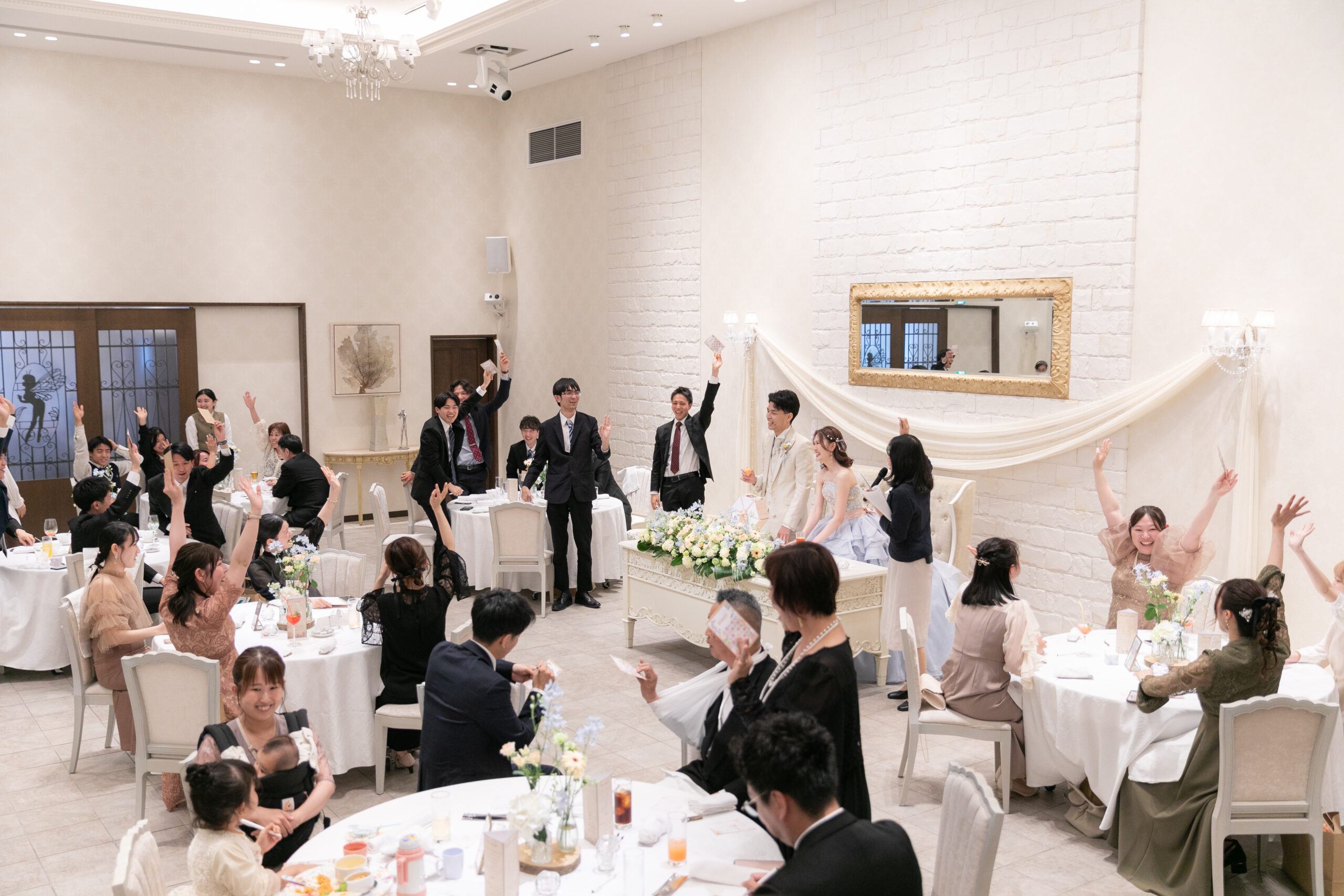 新郎様手作りの抽選器を回し、新郎様が「11番!」と読み上げた瞬間、なんと会場のほとんどの方がビンゴに!ところが、ビンゴにならなかった方こそが“真のラッキー賞”の対象というサプライズ展開✨