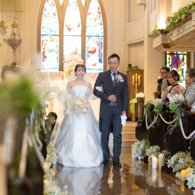 そして、名残惜しさの中で迎えたおふたりのご退場。一日を通してたくさんのお写真も残すことができ、皆様と過ごす温かな時間をしっかりと堪能していただけたのではないかと思います。どうぞ末永くお幸せに…!