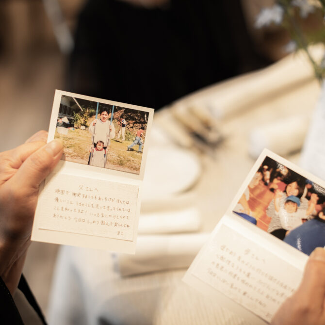 クライマックスでは、おふたりから親御様へ直接「ありがとう」を伝える時間を。手作りの子育て感謝状は、親御様にとっても特別な宝物になったことでしょう。