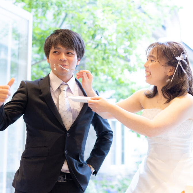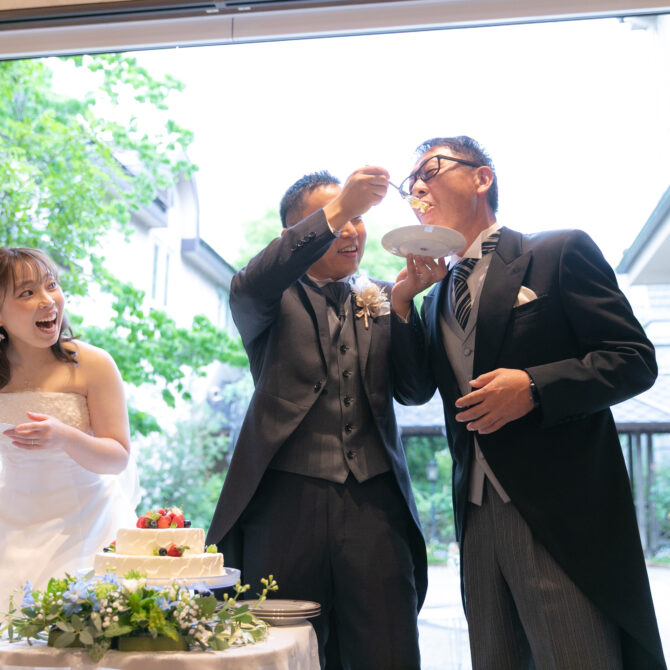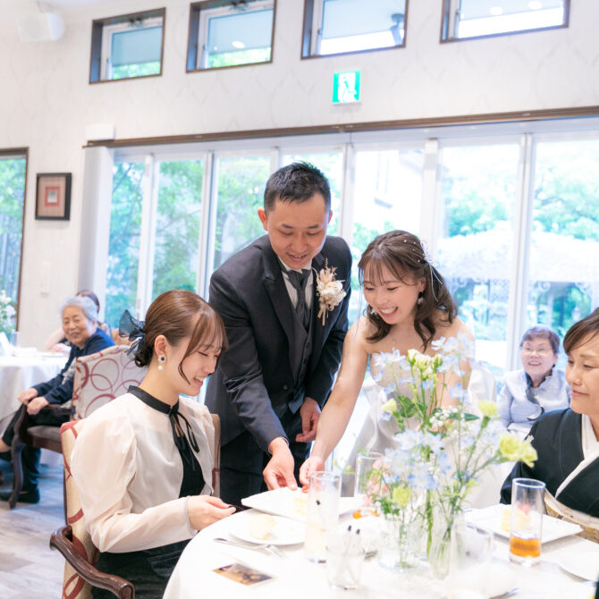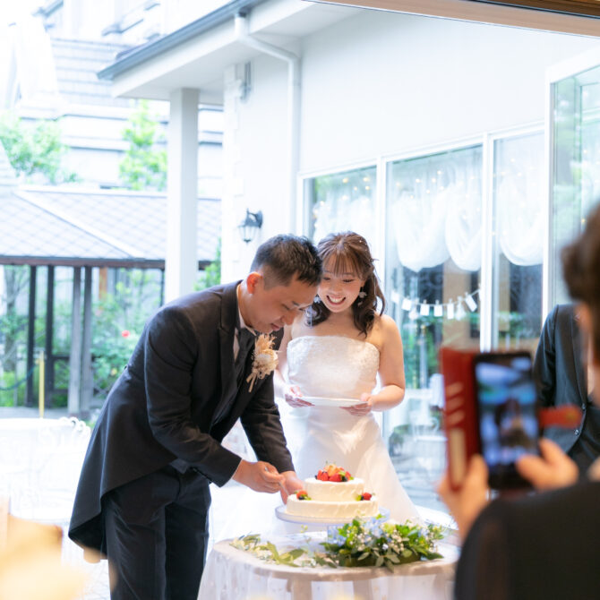 続くウェディングケーキのシーンでは、ゲスト全員へのサンクスバイトを実施。大切な人たちと一緒に味わうケーキの美味しさは格別で、会場中が幸せに包まれました。