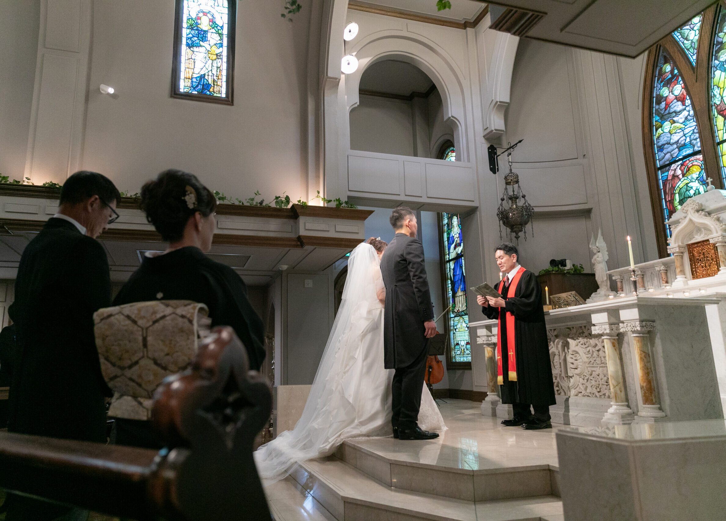 当日を迎えた時は、正直あまり実感が湧きませんでしたが、準備が進むにつれ周りからの祝福の声をいただいたり、家族の楽しそうな表情を見るうちに、少しずつ「結婚したんだ」という実感が込み上げてきました。チャペルでの生演奏や聖歌隊の歌声は厳粛な雰囲気を生み、身が引き締まるような感動がありました。挙式後のフラワーバルーンシャワーは華やかで気分が高まり、その後の披露宴はアットホームな雰囲気で、挙式とのメリハリもつけることができました。