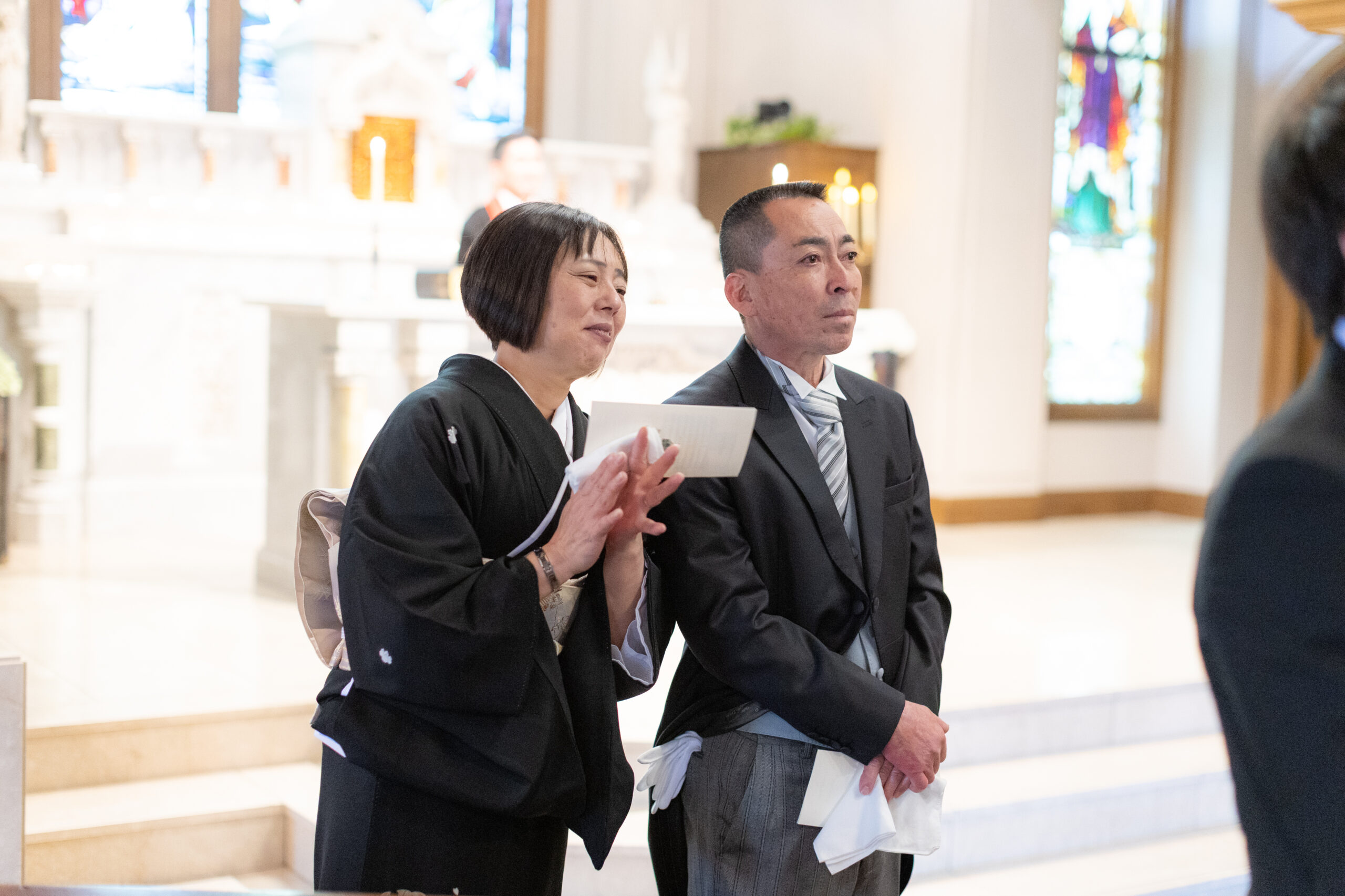 挙式では、ご家族に見守られる中で無事に誓いを交わされました。おふたりだけでなく、親御様も胸に込み上げるものがあり、これまでの歩みを思い返しながら心温まる時間となりました。