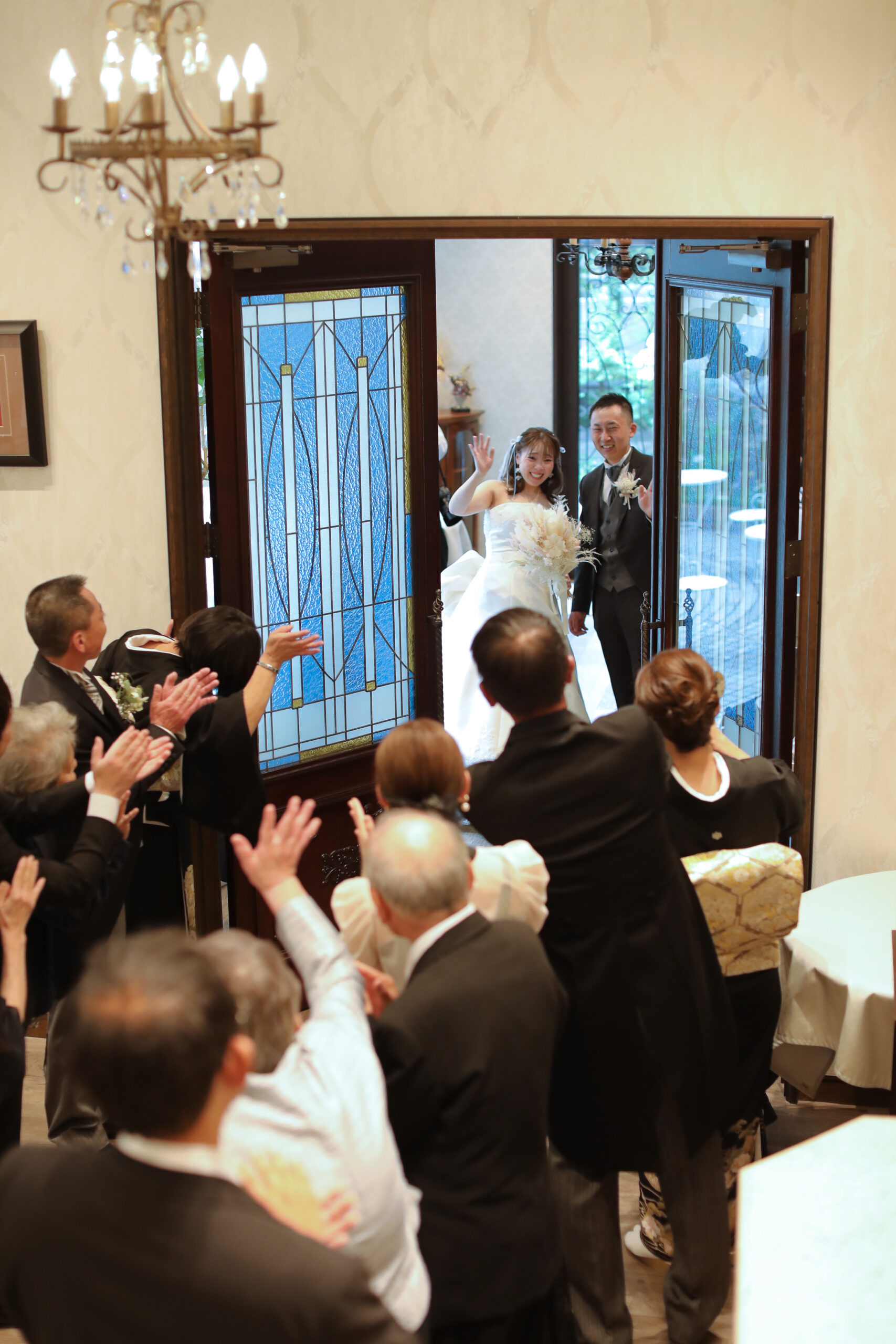 そして、名残惜しさの中で迎えたおふたりのご退場。一日を通してたくさんのお写真も残すことができ、皆様と過ごす温かな時間をしっかりと堪能していただけたのではないかと思います。どうぞ末永くお幸せに…!
