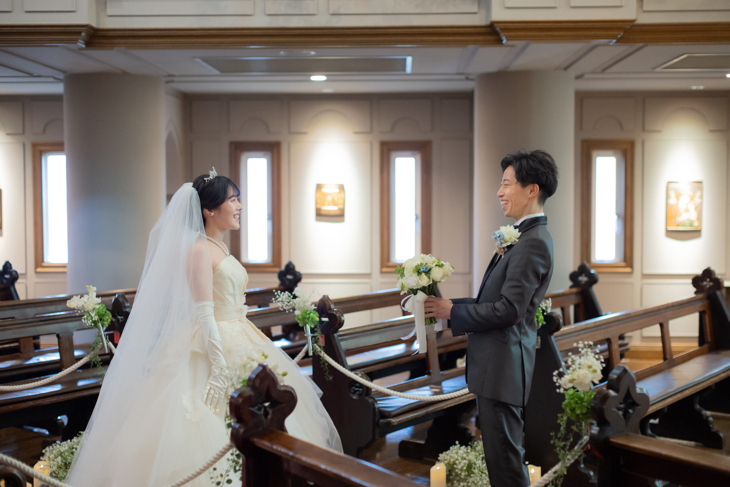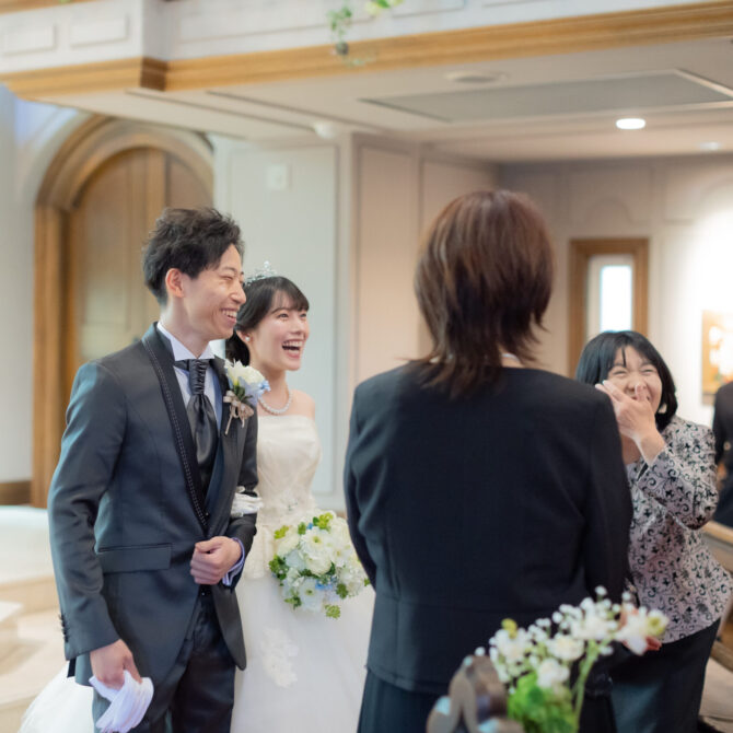 新郎新婦クイズでのゲストの方々がチーム内で話し合ったり、ヒントを得ようと両家で探りあったりして積極的に楽しみながら参加してくれたのでとても嬉しかったです。担当のプランナーさんが親身になってサポートしてくださったり、牧師さんや司会のかた、会場のスタッフの方々も式を良いものにしようという気持ちが伝わり、当日は心配することなく安心して迎えることができました。提携している衣裳店やお花屋さんヘアメイクも気さくな方で聖ペトロ教会を選び出会えてよかったと思いました。